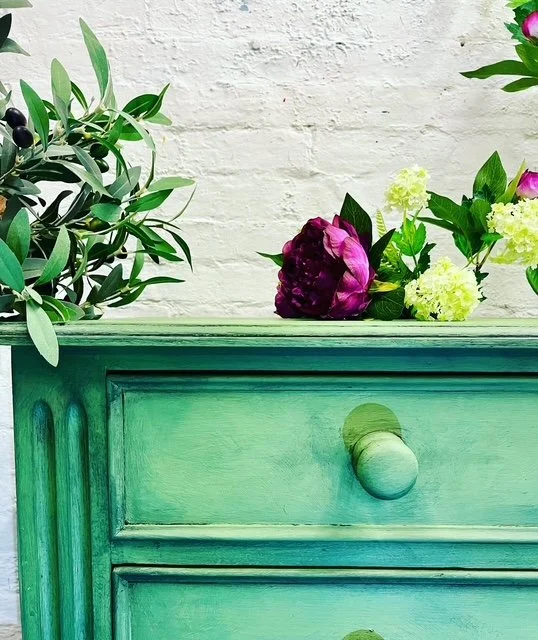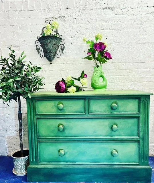 This beautiful Victorian console has been painted using Annie Sloan Whistler Grey and finished with a hand-painted faux marble top.
